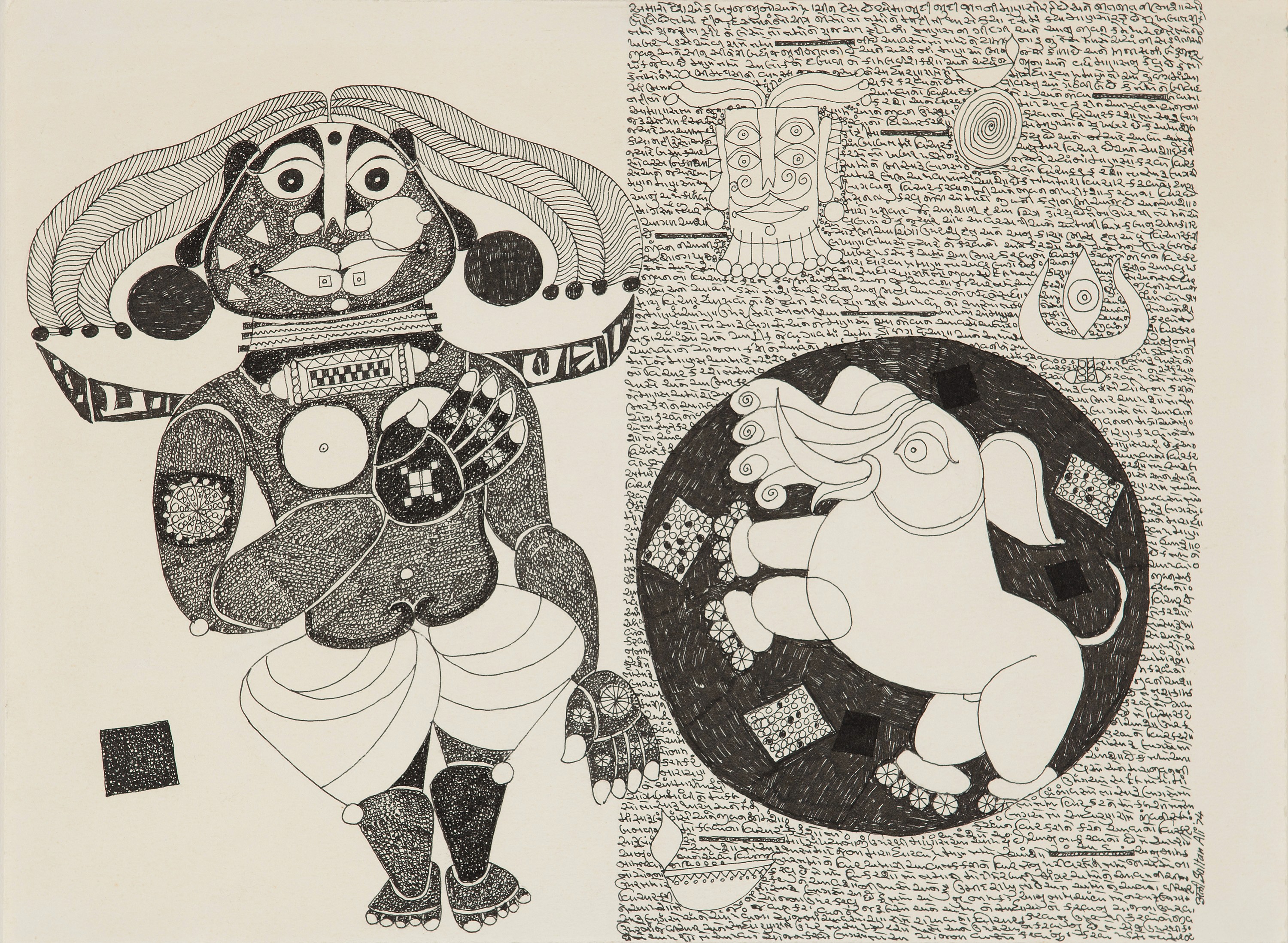 J. Sultan Ali (1920-1990) was born in Bombay and studied at the Sir J. J. School of Art. His practice developed into a highly individual visual language that brought together elements of calligraphy, symbolism, and abstraction.