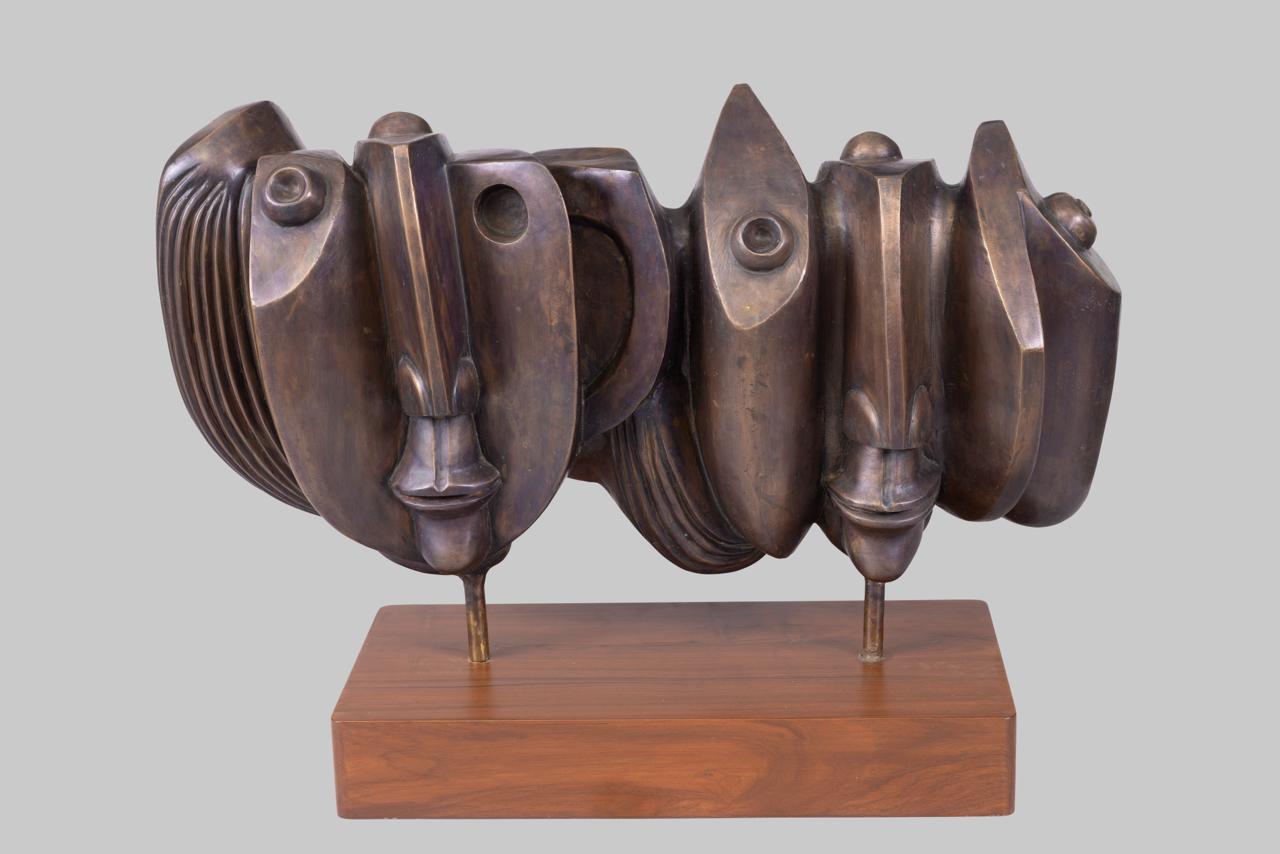 Bronze on wooden base